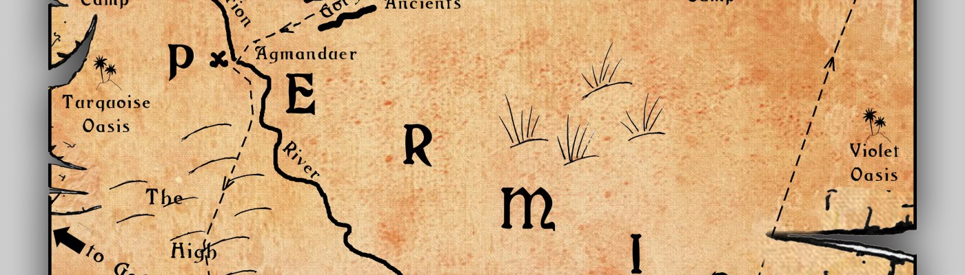 My Partner these last few months. It’s not safe to operate down here alone. Permio: desert realm, outside the Four Kingdoms and as nasty a nest of cutthroat and slime ball as can be imagined. But the merchant pays well. A noise to my right. Big fella, scars and squint do nothing for his looks. Coming my way. Think he wants a chat. I lean back on my stool awarding him my dazzling smile. Don’t think he has a sense of humour.