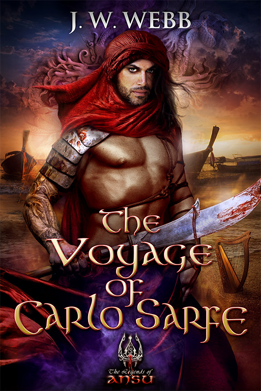 The Voyage of Carlo Sarfe is a journey through dimensions and space, as well as across the oceans. It picks up after The Emerald Queen where Carlo discovers he’s in the future and that his home, Gol, is no more. He needs to get back there and prevent that disaster.